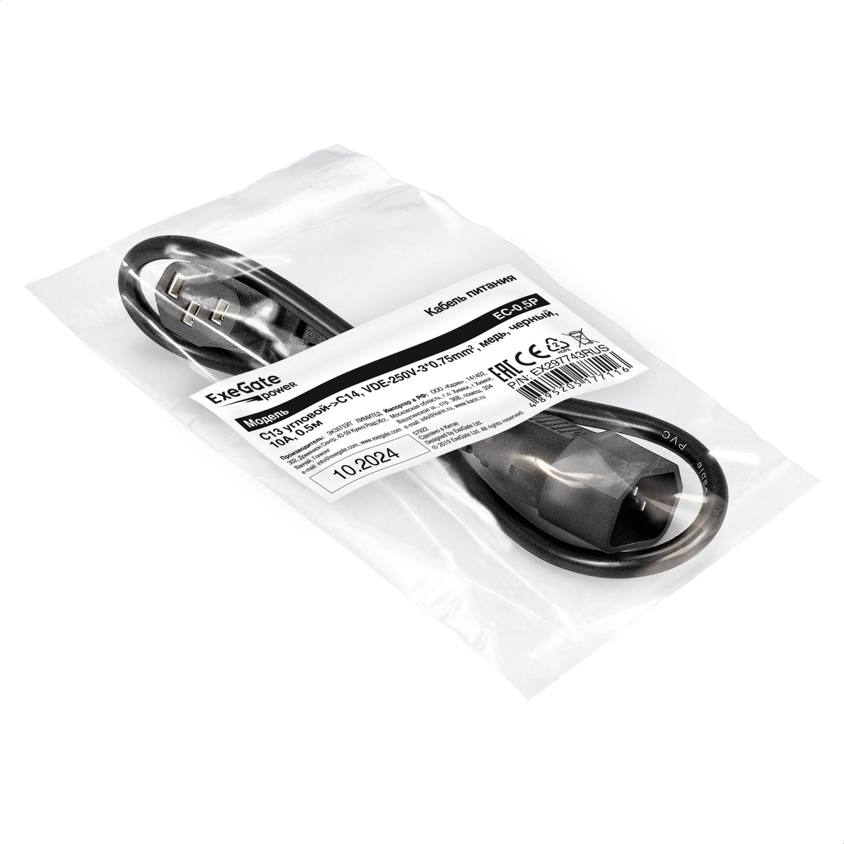ExeGate Power EC-0.5P-C13(Y)->C14/3x0.75Cu